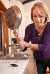 A woman about to kill a bug.