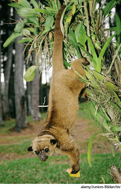 kink·a·jou AHD[kĭngʹkə-jo͞o”] D.J.[ˈkɪŋkəˌdʒuː]K.K.[ˈkɪŋkəˌdʒu]n.(名词) kinkajouPotos flavus- An arboreal mammal(Potos flavus) of Central and South America, having brownish fur and a long, prehensile tail. Also called honey bear 蜜熊:中南美洲一种树栖的哺乳动物,(蜜熊 浣熊科) 有棕色毛皮,长而具缠绕性的尾 也作 honey bear