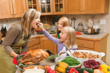 Mother and daughters cooking in the kitchen.
