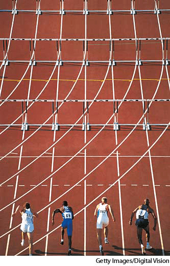 - Sports One of a set of parallel courses marking the bounds for contestants in a race, especially in swimming or track.【体育运动】 跑道:在比赛中表明竞赛者界线的一组平行路线,尤其是游泳或田径运动中