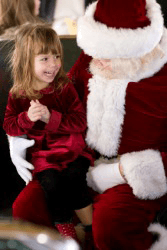 A little girl sits on Santa's lap.