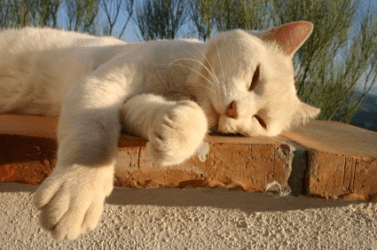 A lazy cat sleeps in the sun.