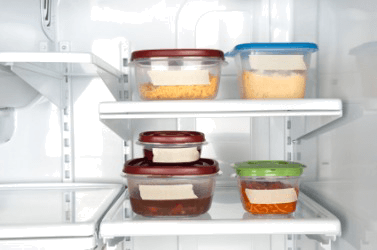 Leftovers stacked neatly in the refridgerator.