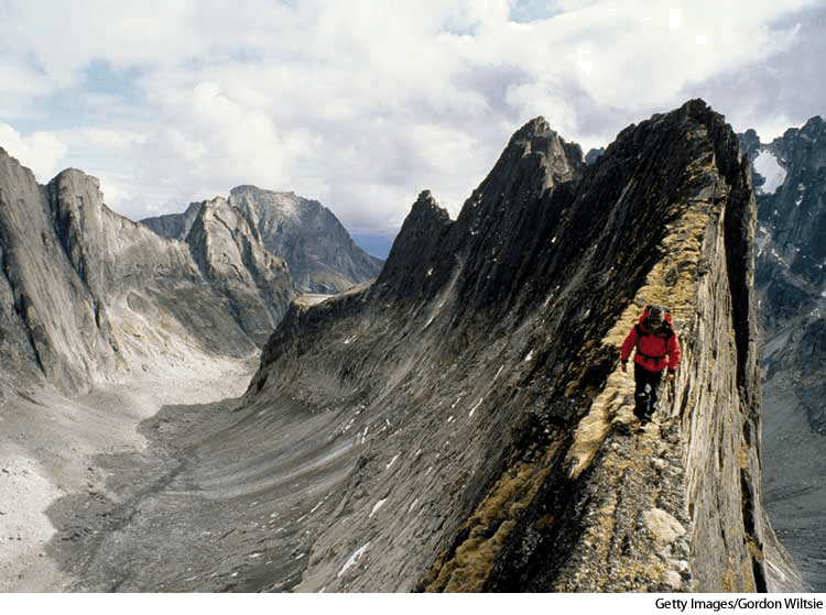 a·rête AHD[ə-rātʹ] D.J.[əˈreɪt]K.K.[əˈret]n.(名词) arêteCirque of the Unclimbables, near Nahanni National Park Reserve, Northwest Territories, Canada- A sharp, narrow mountain ridge or spur.刃岭,棱线:陡峭,狭窄的山脊或横岭