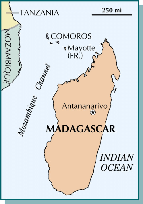 Mad·a·gas·car AHD[măd'ə-găsʹkər] Formerly Mal.a.gas.y Republic[măl'ə-găsʹē] abbr.缩写 Mad.,Madag.D.J.[ˌmædəˈgæskə] Formerly Mal.a.gas.y Republic[ˌmæləˈgæsiː]K.K.[ˌmædəˈgæskɚ] Formerly Mal.a.gas.y Republic[ˌmæləˈgæsi]NONE(无词性) - An island country in the Indian Ocean off the southeast coast of Africa comprising the island ofMadagascar and several small islands. The French first established settlements on the island in 1642 and made it a colony in 1896. The country gained full independence as the Malagasy Republic in 1960 and was renamed Madagascar in 1975. Antananarivo is the capital and the largest city. Population, 9,230,000. 马达加斯加,马达加斯加共和国:印度洋上一岛国,临非洲东南海岸,由马达加斯加岛 和几个小岛组成。法国人首先于1642年在岛上建立定居点,于1896年使之成为其殖民地。该国作为马拉加什共和国于1960年取得完全独立,1975年重新命名为马达加斯加。塔那那列佛是首都和最大城市。人口9,230,000