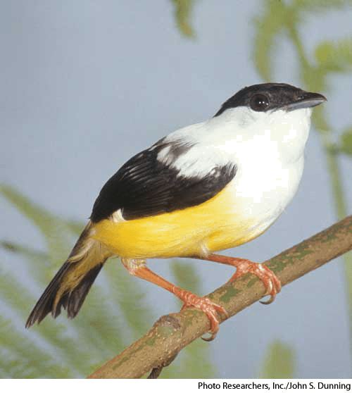 man·a·kin AHD[mănʹə-kĭn] D.J.[ˈmænəkɪn]K.K.[ˈmænəkɪn]n.(名词) manakinmale white-collared manakinManacus candei- Any of various small colorful birds of the family Pipridae, found in forests of Central and South America.侏儒鸟:一种侏儒鸟科的体形小、色彩斑斓的鸟,产于中美洲和南美洲的森林中