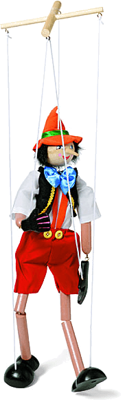 mar·i·o·nette AHD[măr'ē-ə-nĕtʹ] D.J.[ˌmæriːəˈnet]K.K.[ˌmæriəˈnɛt]n.(名词) © School Division, Houghton Mifflin Company- A jointed puppet manipulated from above by strings or wires attached to its limbs.牵线木偶:关节可以活动的木偶,通过系在其四肢上的线绳从上方来操纵它