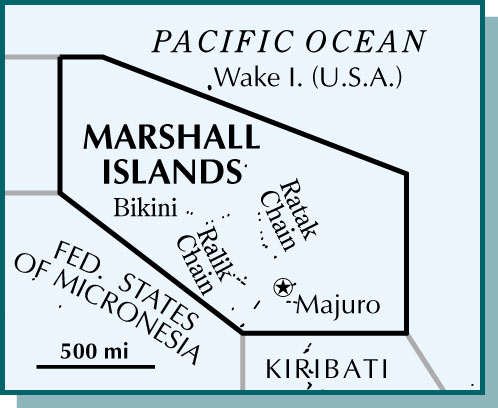 Marshall IslandsNONE(无词性) - A self-governing island group in the central Pacific Ocean. First sighted by Spanish explorers in the early 16th century, they were governed by Spain and Germany until 1920, when they became a Japanese mandate. From 1947 until 1979 they were part of the U.S. Trust Territory of the Pacific Islands. In 1986 the islands became a republic. Population, 30,873.马绍尔群岛:太平洋中部的自治岛群。16世纪早期由西班牙探险家最先发现,先后被西班牙和德国统治,直到1920年成为日本托管地。从1947年到1979年一直为美国在太平洋群岛上的托管地的一部分。1986年群岛成立共和国。人口30,873