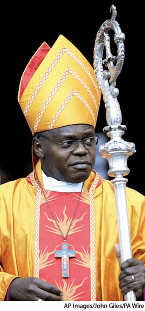 mi·ter AHD[mīʹtər] D.J.[ˈmaɪtə]K.K.[ˈmaɪtɚ]n.(名词) miterworn by Dr. John Sentamu, Archbishop of York- Ecclesiastical The liturgical headdress and part of the insignia of a Christian bishop. In the Western church it is a tall pointed hat with peaks in front and back, worn at all solemn functions.【基督教会】 主教冠:基督教主教的礼拜仪式的头饰,是其标志的一部分,在西方教堂中,是一个高而尖的帽子,在前和后有尖状突出,在隆重的庆祝仪式上佩戴