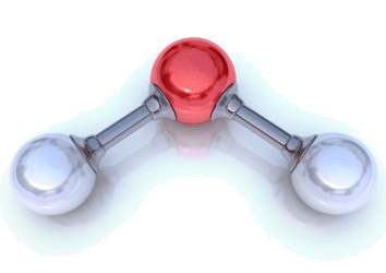 A model of a water molecule.