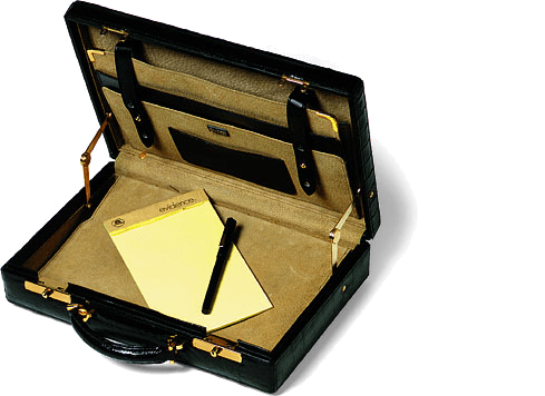 手提公文箱:一种轻薄的,面扁平且硬,有铰链的手提箱,通常有锁