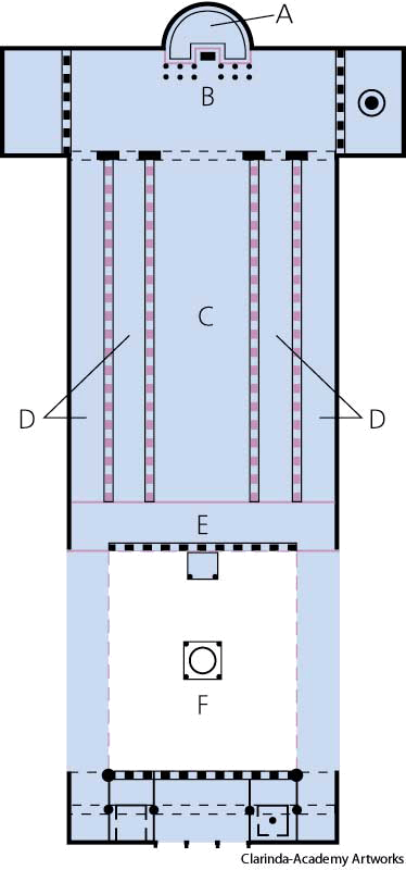 nave 1 AHD[nāv] D.J.[neɪv]K.K.[nev]n.(名词) nave1plan of the 4th-century ADSt. Peter's Basilica, RomeItalyA. apseB. transeptC. naveD. aislesE. narthexF. atrium- The central part of a church, extending from the narthex to the chancel and flanked by aisles.教堂中殿:教堂的中心部分,从通向教堂正厅的门厅延伸到教堂内环线圣坛的高坛并且以小经作为侧翼