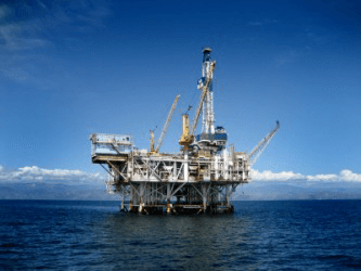 An offshore oil rig.