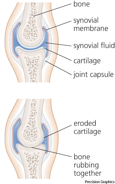 os·te·o·ar·thri·tis AHD[ŏs'tē-ō-är-thrīʹtĭs] D.J.[ˌɒstiːəʊɑːˈθraɪtɪs]K.K.[ˌɑstioɑrˈθraɪtɪs]n.(名词) osteoarthritistop: normal jointbottom: osteoarthritic joint- A form of arthritis, occurring mainly in older persons, that is characterized by chronic degeneration of the cartilage of the joints. Also called degenerative joint disease 骨关节炎:一种症状为关节处软骨产生慢性退化的关节炎,多见于老年人 也作 degenerative joint disease