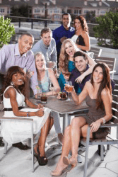 A group having a party out-of-doors.