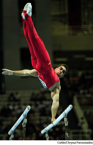 parallel barspl.n.Sports(复数名词)【体育运动】parallel barsMarian Drăgulescu of Romania at the 2004 Olympic GamesAthens, Greece
