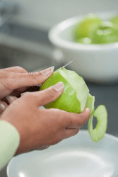 She pares the apples for her homemade apple pie recipe.