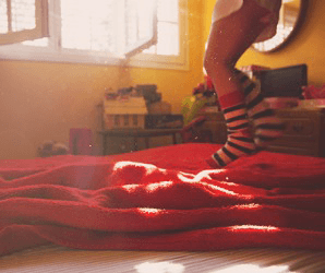 Particles of dusk flew into the air when Gracie jumped up and down on the blanket