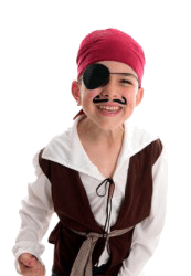 A little boy plays pirate wearing an eye patch.