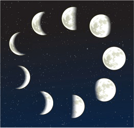 This illustration of the moon phases exhibits the periodicity of a full moon.