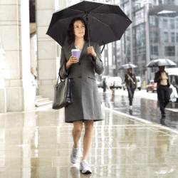 The persistent rain made walking to work a challenge because she had to carry her briefcase and coffee as well as an umbrella.