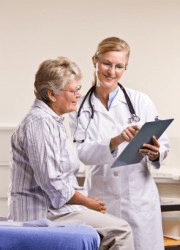 A woman visits her physician.