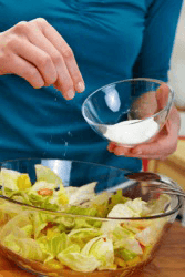 Adding a pinch of salt to a salad