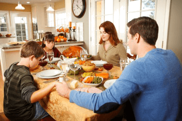 A pious family saying grace before dinner.