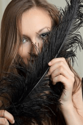 A woman holding a large plume.