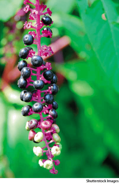 poke·weed AHD[pōkʹwēd'] D.J.[ˈpəʊkˌwiːd]K.K.[ˈpokˌwid]n.(名词) pokeweedAmerican pokeweedPhytolacca americana- A tall North American plant(Phytolacca americana) having small white flowers, blackish-red berries clustered on long, drooping racemes, and a poisonous root. Also called pokeberry ,pokeroot 美洲商陆:一种北美洲高大植物(美洲商陆 商陆属) ,有白色的小花,黑红色浆果簇生著长而下垂的总状花序,和有毒的根 也作 pokeberry,pokeroot