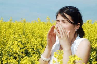 A woman with a pollen allergy.