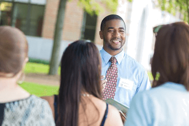 The guide gave the group of prospective students a tour of the college campus.