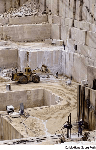 v.tr.(及物动词)quar.ried, quar.ry.ing, quar.ries - To obtain (stone) from a quarry, as by cutting, digging, or blasting.采石:如通过挖掘、切割或爆破从采石场获取(石料)