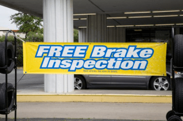 A banner announcing brake inspections at a tire shop.