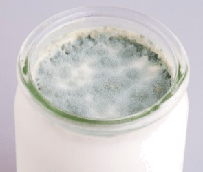 A bottle of rancid milk.