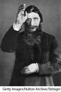 Ras·pu·tin AHD[răs-pyo͞o′tĭn, rə-spo͞o′tyĭn] Grigori Efimovich (1872?-1916) D.J.[ræsˈpjuːtɪn, rəˈspuːtjɪn]K.K.[ræsˈpjutɪn, rəˈsputjɪn]NONE(无词性) Rasputinc. 1914 photograph- Russian starets whose magnetic personality and relative success in the treatment of the czarevich's hemophilia gained him favor in the court of Nicholas II. He was assassinated by noblemen who feared that his licentious manner and ignorance would undermine the monarchy.拉斯普廷,格里高利·埃费默维奇:(1872?-1916) 俄国农民医生,其迷人的性格以及为沙皇王子医好了血友病使其在尼古拉二世宫中大受宠爱。由于其行为淫荡,缺乏知识,王公贵族们因怕他毁了王室而暗杀了他