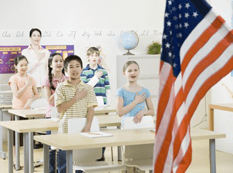 The students recite the Pledge of Allegiance at the start of every school day.