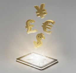 These currency symbols represent the Yuan (or Yen), Pound, Euro and Dollar.