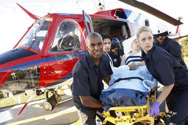 The medivac helicopter team is able to respond quickly to an emergency.
