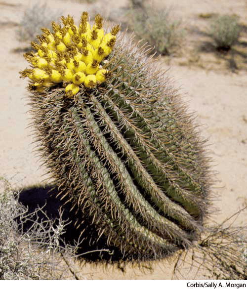 barrel cactusn.(名词) barrel cactusfishhook barrel cactusFerocactus wislizeni- Any of several cacti, especially in the generaFerocactus and Echinocactus, having unbranched, globular to columnar, ribbed spiny stems. 圆桶掌:一种仙人掌类植物,尤指仙人球属 和 刺仙人掌属 ,有多刺的茎,成不分支的球状或圆柱状