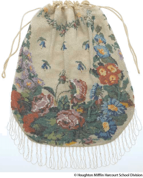 1. A woman's drawstring handbag or purse.网格包:女人的拉带手提包或钱包