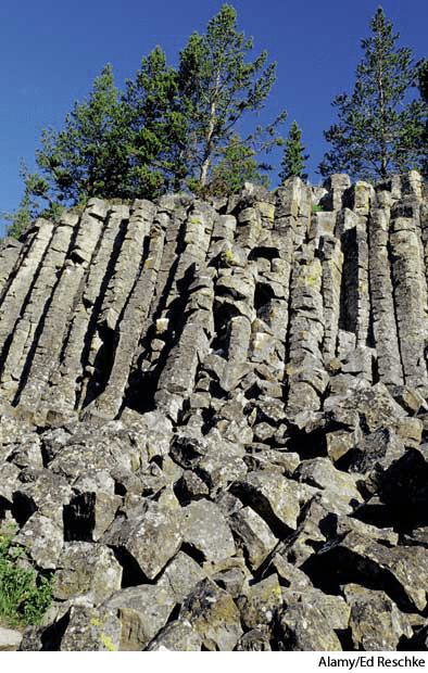 ba·salt AHD[bə-sôltʹ, bāʹsôlt'] D.J.[bəˈsɔːlt, ˈbeɪˌsɔːlt]K.K.[bəˈsɔlt, ˈbeˌsɔlt]n.(名词) basaltcolumnar basalt at Sheepeater Cliff, Yellowstone National Park, Wyoming- A hard, dense, dark volcanic rock composed chiefly of plagioclase, pyroxene, and olivine, and often having a glassy appearance.玄武岩:一种硬的、致密的、黑色的火山岩。它主要由斜长石、辉石和橄榄石组成,外表经常很光滑