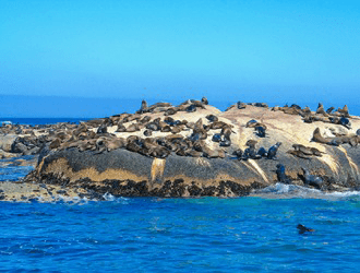 The sea lions gather together in a rookery during breeding season.
