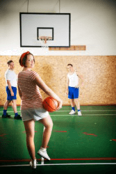 People playing basketball.