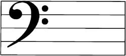 A symbol indicating that the fourth line from the bottom of a staff represents the pitch of F below middle C. Also called