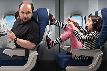 Tara didn't realize that she was being rude to the man in the next row when she was pushing the back his seat with her feet.