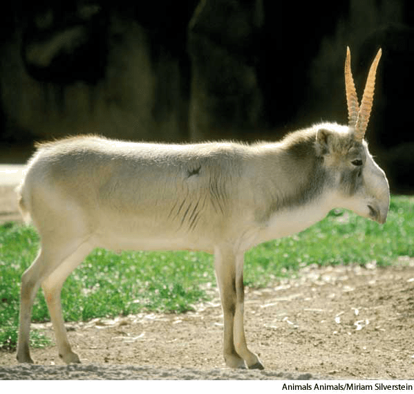 sai·ga AHD[sīʹgə] D.J.[ˈsaɪgə]K.K.[ˈsaɪgə]n.(名词) saigamale saigaSaiga tatarica- Either of two small antelopes(Saiga tatarica or S. mongolia) of the plains of northern Eurasia, having a stubby snout. 高鼻羚羊:欧亚大陆北部平原的两种小羚羊中的一种(驼羚属 高鼻羚羊 或 驼羚属 蒙古羚羊) ,口鼻部短而粗
