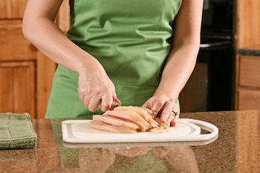Wash your hands and cutting board with hot soapy water after preparing raw chicken to avoid salmonella contamination.