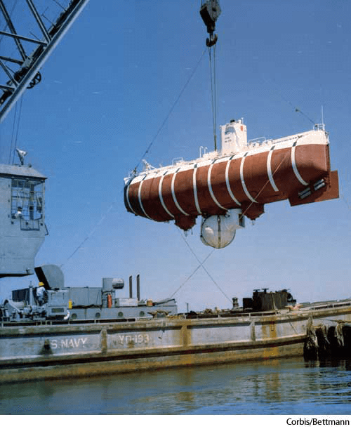 bath·y·scaph AHD[băthʹĭ-skăf'] 也作 bath·y·scaphe [-skăf', -skāf'] D.J.[ˈbæθɪˌskæf] 也作 bath·y·scaphe [-ˌskæf, -ˌskeɪf]K.K.[ˈbæθɪˌskæf] 也作 bath·y·scaphe [-ˌskæf, -ˌskef]n.(名词) bathyscapheUSS Trieste- A free-diving, self-contained deep-sea research vessel consisting essentially of a large flotation hull with a crewed observation capsule fixed to its underside, capable of reaching depths of 10 kilometers (6.2 miles) or more.深海潜测艇:一种能自由潜入,能够人为操控的深海探测潜艇。上由一个大型外壳和固定在下面的探测舱组成,以便工作人员观察,能够到达十公里或更深的海底