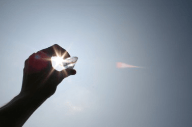 A diamond scintillates in the sun.
